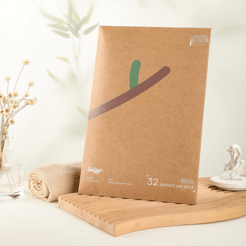 由此,twiggy应运而生,其品牌理念深受自然启发,旨在通过日常所用之物让人们更加贴近自然,他也希望可持续生活的理念,就像树枝一样在人们的心中萌芽生长。品牌推出的首款产品是twiggy洗衣片,这款产品不仅清洁效果出色,而且采用了可持续的包装材料,从外包装到物流运输袋均使用到了FSC认证牛皮纸,可再利用、可回收,不含塑料成分。更重要的是,通过使用这样的产品和包装形态,每盒洗衣片平均可以减少2个(1.2kg)洗涤瓶的消耗,以及减少2560g液体的运输,从而有效降低对环境的负担,为我国实现双碳目标贡献一份力量。